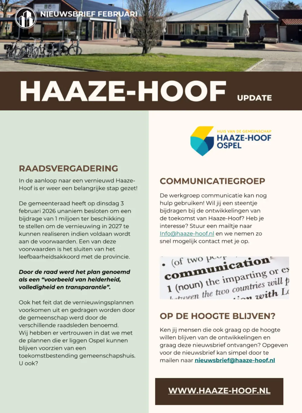 Mail dan naar: nieuwsbrief@haaze-hoof.nl
